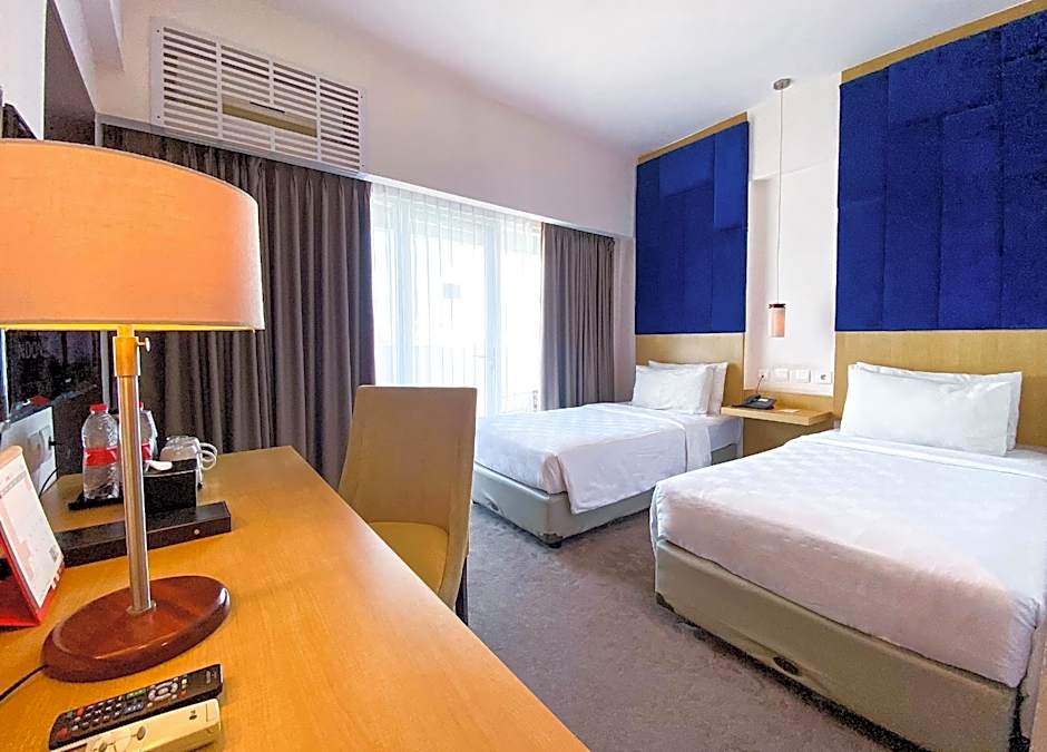 This air-conditioned twin room comes with a flat-screen TV, a personal safe and tea/coffee making facilities. Private bathroom has a hairdryer and free toiletries. Slippers are provided.