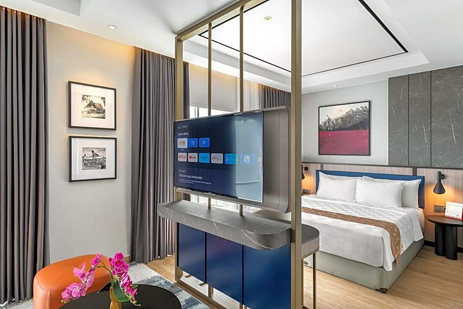 Boasting the largest space in the hotel, this air-conditioned suite is fitted with a flat-screen TV, a laptop-sized safety deposit box and a fridge. It offers a separate living room with a dining area and an private bathroom with a bath and shower facilities.
